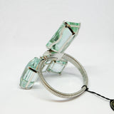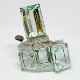 Splendido gioiello dalle forme geometriche e inusuali, ipnotizza con le sue pietre in acqua marina 345 carati accompagnate da un bellissimo bracciale in oro bianco e brillanti 1,80 carati