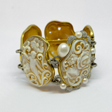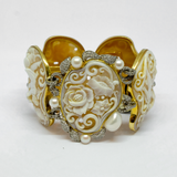 Bracciale d'oro bianco e giallo con 5 cammei, perle e brillanti carati 2,40