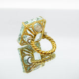Base realizzata in oro bianco e giallo con pietra Acqua Marina 89,7 carati, adornato con brillanti 1,63 carati.